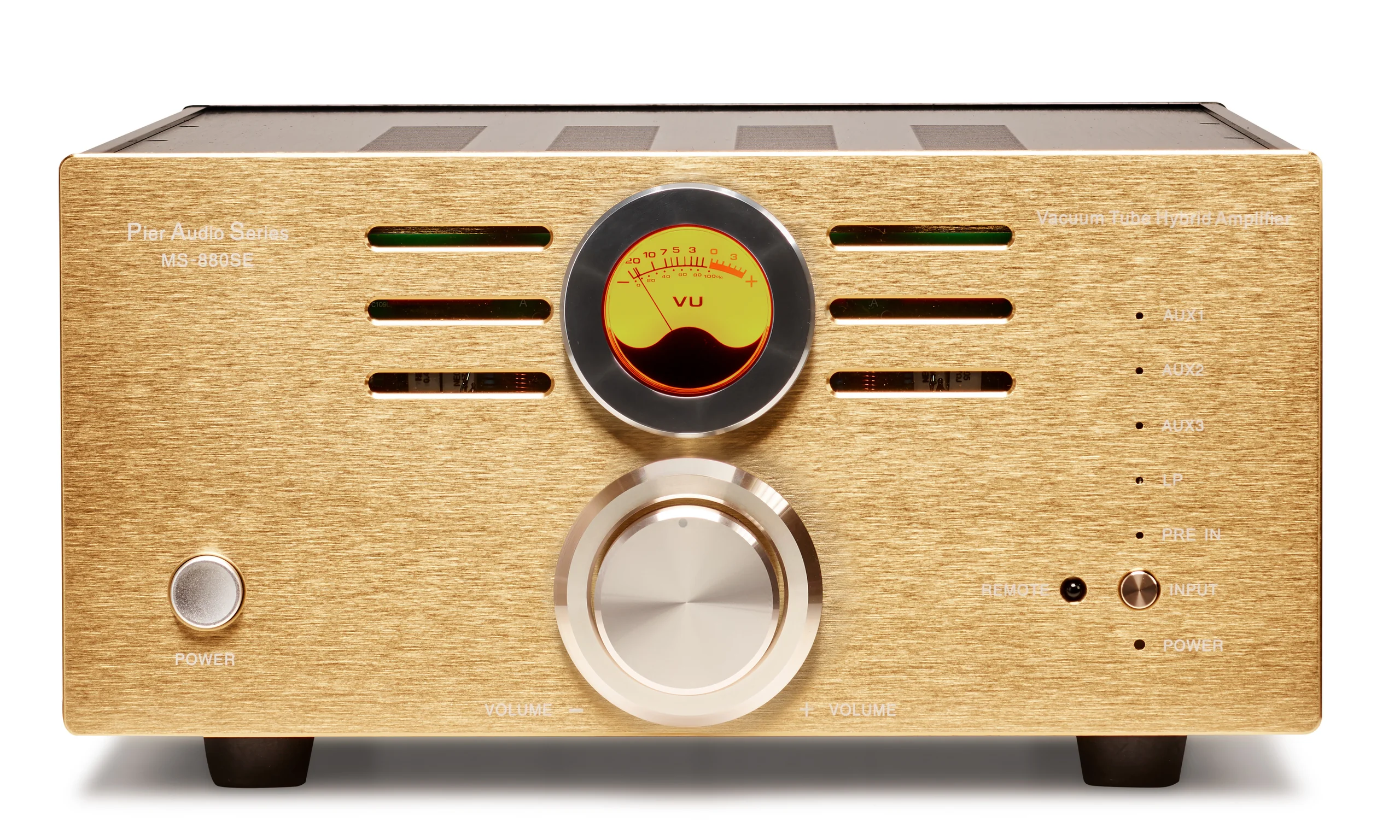Sistema híbrido da Pier Audio de válvulas e amplificação de estado sólido, fornecida com válvulas N.O.S. como padrão.