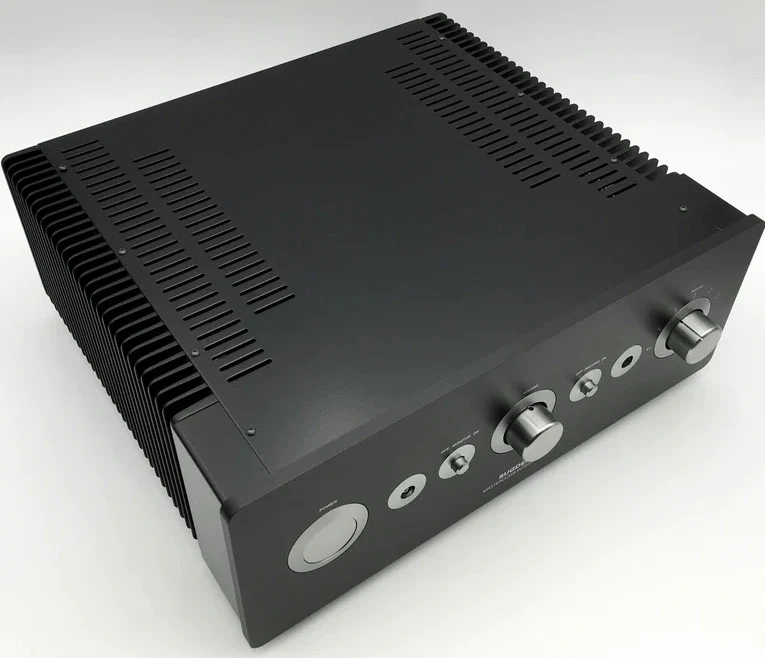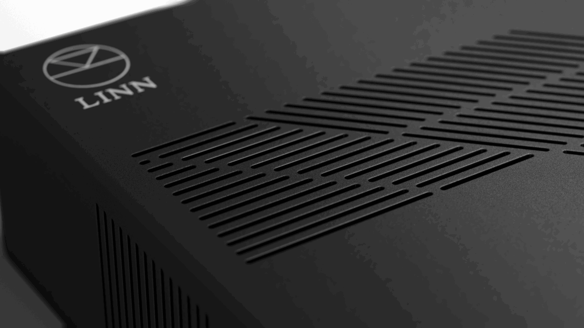 A sua capa exterior preta, elegante e subtilmente curvada, é formada por uma única peça de alumínio com 2 mm de espessura. É perfurada, cortada e dobrada com precisão, com tolerâncias extremamente elevadas, antes de ser pulverizada com uma camada de tinta em pó, curada até obter um brilho acetinado e finalizada com o logótipo Linn impresso em UV. Tudo feito internamente na Escócia.